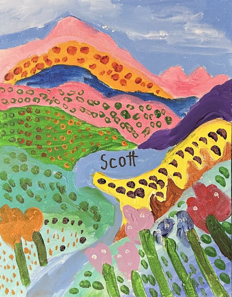 Living with intellectual and physical disabilities, including cerebral palsy, has shaped Scott’s perspective but never limited his creativity. Art is both a form of self-expression and a way to connect with others. After years of sharing his work primarily with family, Scott is now inviting a wider audience to experience his view of the world.