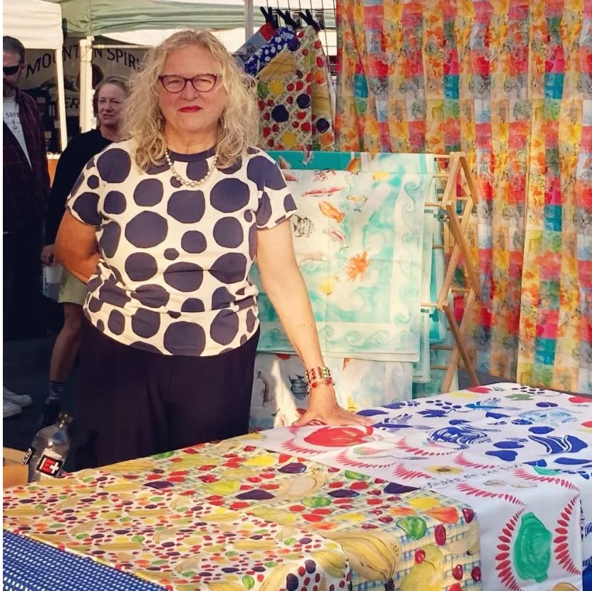 Martha Worthley (2025 Port Townsend Art Award Recipient) been making work and supporting the arts in Port Townsend for decades. Perhaps best known in town for designing and painting the Rose Theatre curtain, her fine art has been exhibited in Port Townsend, Port Angeles, and Seattle. She has a long-standing love of large-scale work and, for more than twenty years, has created painted backdrops for Centrum’s Festival of American Fiddle Tunes. She also designs and creates textiles for her company Mim and Poppy Design. Martha has been deeply involved in arts education, serving as an art specialist with the Port Townsend School District and as Program Manager for Youth at Centrum, where she also managed artist residencies. She currently serves as Executive Director of Northwind Art.