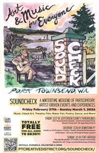 Soundcheck Media Kit Press ReleaseSoundcheck IllustrationLogosImagesPromotional Assets City of PT Press Release – Soundcheck 2026 Soundcheck Illustration Credit Rose Burt Artwork Credit: Rose Burt. Do not crop. Combined City and Creative District logos Logo File Port Townsend Creative District Logo Logo File City of Port Townsend Logo Logo File Port Townsend Destination Brand Logo Logo file Leila Block (photo by Diane Urbani) Image File Port Townsend Poet Laureate Rufina C. Garay Image File Wizard Image File Tex Armstrong Image File Brother Townsend Image File Soundcheck Flyer (Letter-size PDF file) Soundcheck Poster (Tabloid-sized PDF file)