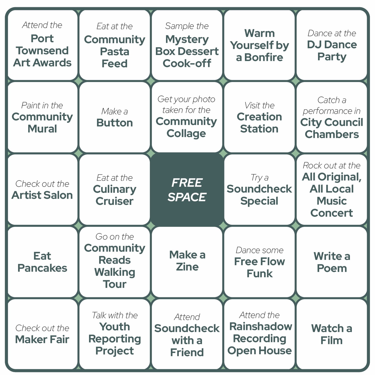 Soundcheck is a wintertime weekend of participatory, artist-driven events and experiences that highlight Port Townsend’s rich creative spirit.